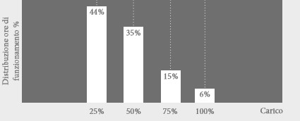 Figura 1 L’efficientamento sui motori elettrici prevede la conoscenza della distribuzione delle ore di funzionamento con la percentuale di carico in cui lavora il motore, come in questo grafico. (Blue Angel)