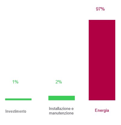 Figura 2 Costo globale (fatto 100) riscontrato durante il ciclo di vita di un motore elettrico (durata media di 15 anni) (Schneider Electric Industries)