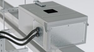 La seconda serie, Distritech, è specifica per condotti sbarre con conduttori in alluminio per il supporto di corrente nominale da 160 A a 630 A ed è stata recentemente arricchita da cassette di derivazione in plastica disponibili in quattro modelli (vuota, con base portafusibili, predisposta per interruttori modulari, allestita con prese industriali) con portata che spazia dai 63 A fino ai 160 A. A dispetto della corrente nominale supportata, i condotti sbarra della famiglia Distritech hanno peso e dimensioni ridotti, caratteristiche che favoriscono la loro semplice installazione. A testimonianza della sua estrema duttilità, la gamma Distritech è dotata di un sistema di congiunzione monoblocco e di prese di derivazione dotate di un sistema di chiusura automatica una volta rimossa la cassetta di derivazione e in numero variabile sulla base di un determinato progetto. Versatili, dunque, tanto nelle prese quanto nelle cassette di derivazione, e disponibili con dimensioni speciali a seconda di specifiche richieste. I condotti sbarra Distritech possono essere forniti anche in rame, anziché in alluminio: anche in questo caso con portata da 250 A a 800 A.